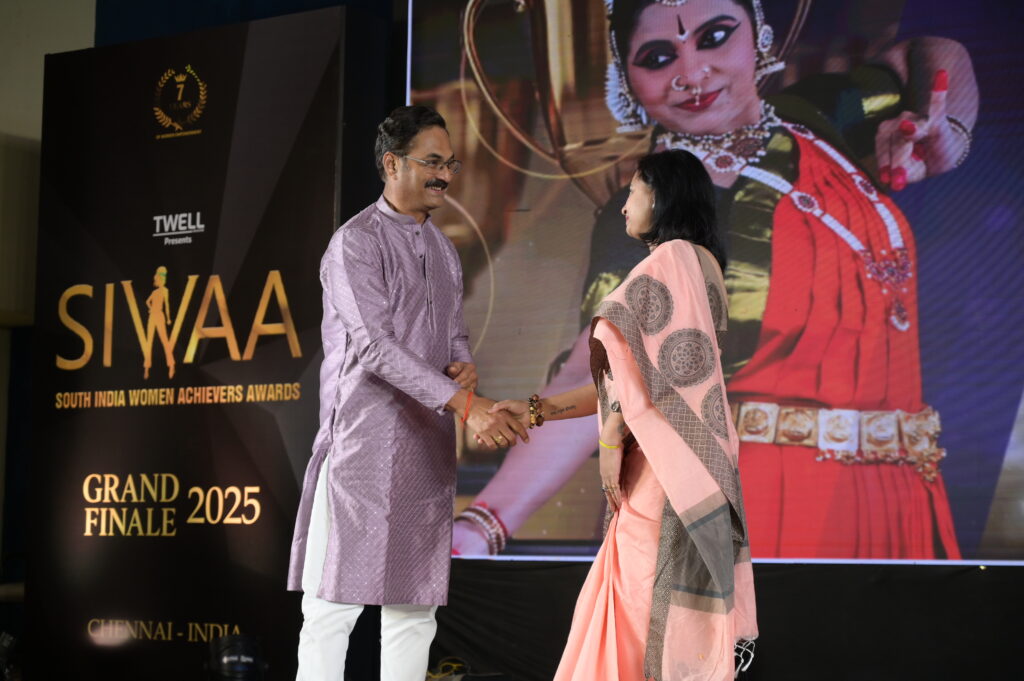 Recognized with numerous awards including Nritya Shrivali, Natya Choodamani, Natya Shiromani, and Power Woman Award.